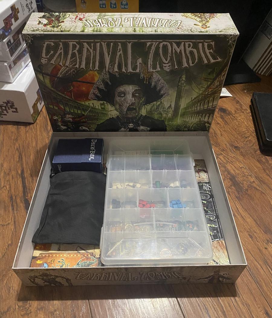 This listing is for an unplayed copy of the first edition of Carnival Zombie. It includes a Rubbermaid tackle box (as pictured) and a deck box to store the cards. Min Bid: $20 Fundraiser Group: 2023 - Job Loss & Medical Bills Current bid: $42.00 Add new comment Comments Bid Amount: $30.00 reply Bid Amount: $40.00 reply Bid Amount: $42.00 reply Add new comment Your name * Please enter your first and last name so we can contact you if you are the high bidder. Only your first name and last initial will be publicly visible. E-mail * Please enter your email address. This will not be displayed on the website, and is only used for contacting the high bidder. Bid Amount * USDHow much you are bidding for the item, in US dollars. Comment