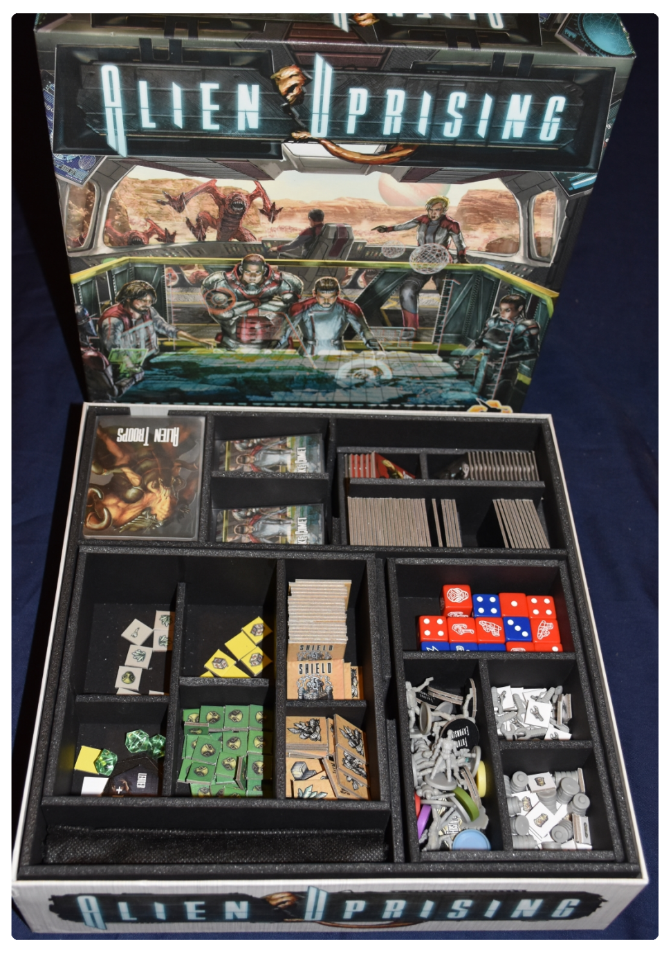 This listing is for Alien Uprising, designed by Richard Launius and Sean Brown, the Rex Nova expansion, the "Insert Here" storage system and all cards sleeved. The insert accommodates sleeved cards and the main inserts contains (4) removable inner trays for easy access to pieces. The insert holds the base game and the Rex Nova expansion.You can view more pictures of the insert here.