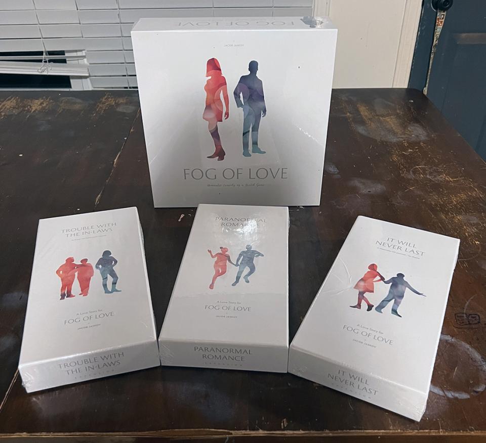 This listing is for a new (sealed) copy of Fog of Love and the following expansions: Trouble with the In-Laws Paranormal Romance It Will Never Last Min Bid: $30 Fundraiser Group: 2022 - Raising funds for medical bills Current bid: $55.55 Add new comment Comments Bid Amount: $44.44 reply Bid Amount: $46.66 reply Bid Amount: $55.55 reply Add new comment Your name * Please enter your first and last name so we can contact you if you are the high bidder. Only your first name and last initial will be publicly visible. E-mail * Please enter your email address. This will not be displayed on the website, and is only used for contacting the high bidder. Bid Amount * USDHow much you are bidding for the item, in US dollars. Comment