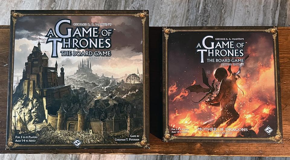 This listing is for the Game of Thrones and Mother of Dragons 2nd edition games and Insert Here organizer (more pics shown here). All cards are sleeved.