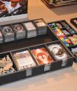 This insert is composed of (2) main trays. The bottom tray is designed to hold the game tiles and villain minis. It contains 1 inner tray to add organization to the smaller connecting tile pieces. The top tray holds sleeved cards. It has (2) inner trays to hold the various bits and has enough room to hold an additional die set. The insert will hold the Han Solo, Chewbacca, Rebel Troopers, Rebel Saboteurs, R2-D2 / C3-PO ally packs and the General Weiss, Royal Guard, IG-88, Boba Fett, and Kayn Somos villian packs. The Twin Shadows and all ally/villain packs released after the ones listed above will be incorporated into an insert for the Return to Hoth expansion.