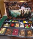 This insert holds the Z-Man ed. game plus the Voyage of the Beagle expansion. The insert is designed to hold sleeved cards. The insert also has 1 removable tray that allows you to take advantage of extra storage for all of the bits. The insert sits on top of the board, instructions, and scenario cards.