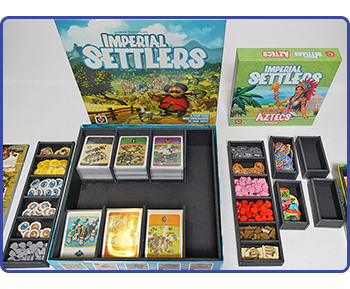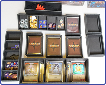 This storage system will hold the base game and the following expansions: 3 is a Magic Number, Atlanteans, Why Can't we be Friends, and the recently released Aztecs expansion. It will also house premium sleeved cards. Note: in order to accomplish this, you will need to use your Aztecs box to hold an insert designed to hold all of the non-faction cards. The storage system comes with (7) trays. In addition to the tray that fits into Aztecs, the system comes with another base tray for the main game box and (6) additional and removable trays. These removable trays will hold game components. You can view more pics of the storage system here.