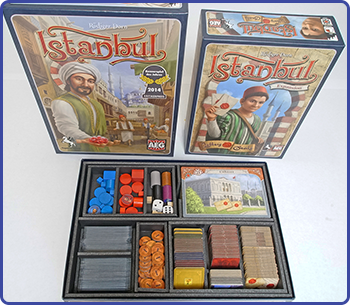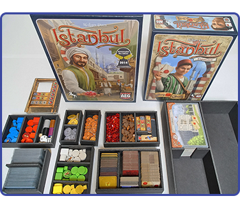 This storage system is designed to hold the base game and both the Mocha & Baksheesh and Letters and Seals expansions. It will also hold premium sleeved cards. It comes with a base tray and (7) removable trays. You can view more pics of the storage system here.